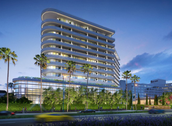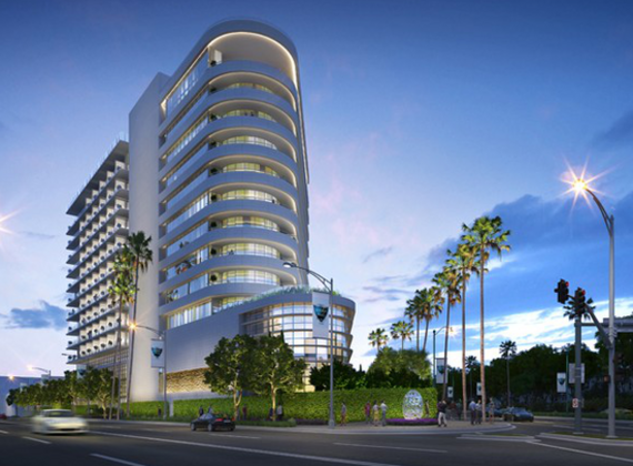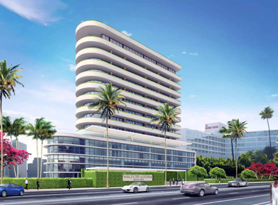 The Waldorf Astoria will be a 12-story hotel, designed by Gensler and with interiors by Pierre-Yves Rochon, and is expected to open in 2017. The hotel will hold 170 room including 42 suites with oversized balconies. There will also be 3rd floor private Celebrity Villa Suites with spacious private patios and luxurious gardens. The Waldorf Astoria Spa, high-end retail shops, an elegant lobby bar, and multiple restaurants will be open for the public. Murals of California landscapes and a large clock similar to the one in the Waldorf Astoria in New York will form the three-story lobby of the hotel.