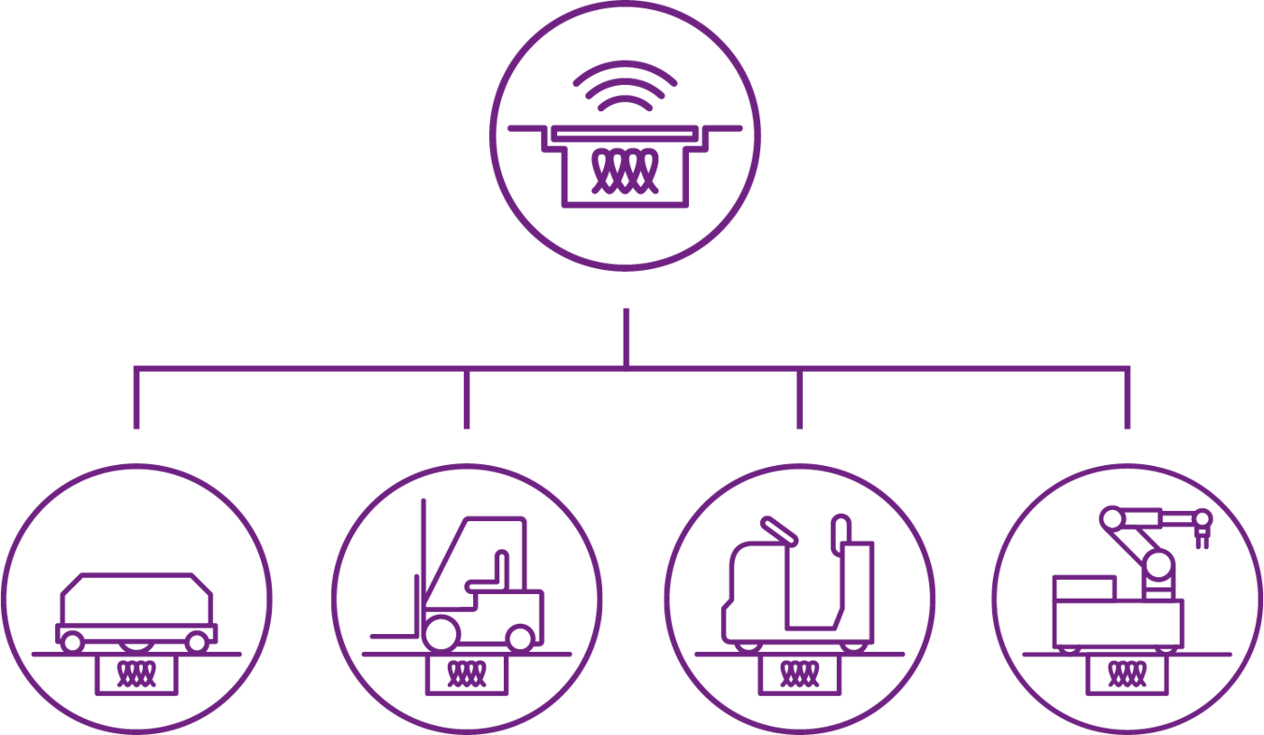 Charging coils are placed in the ground under a protective cover and are activated only when a matching receiving coil is positioned above it. Charging begins immediately and ends as soon as the 2 coils are no longer in position. More locations equal more opportunity to charge during the workflow and intelligently planned charging points ensure a stable high state of charge and maximum fleet utilization.